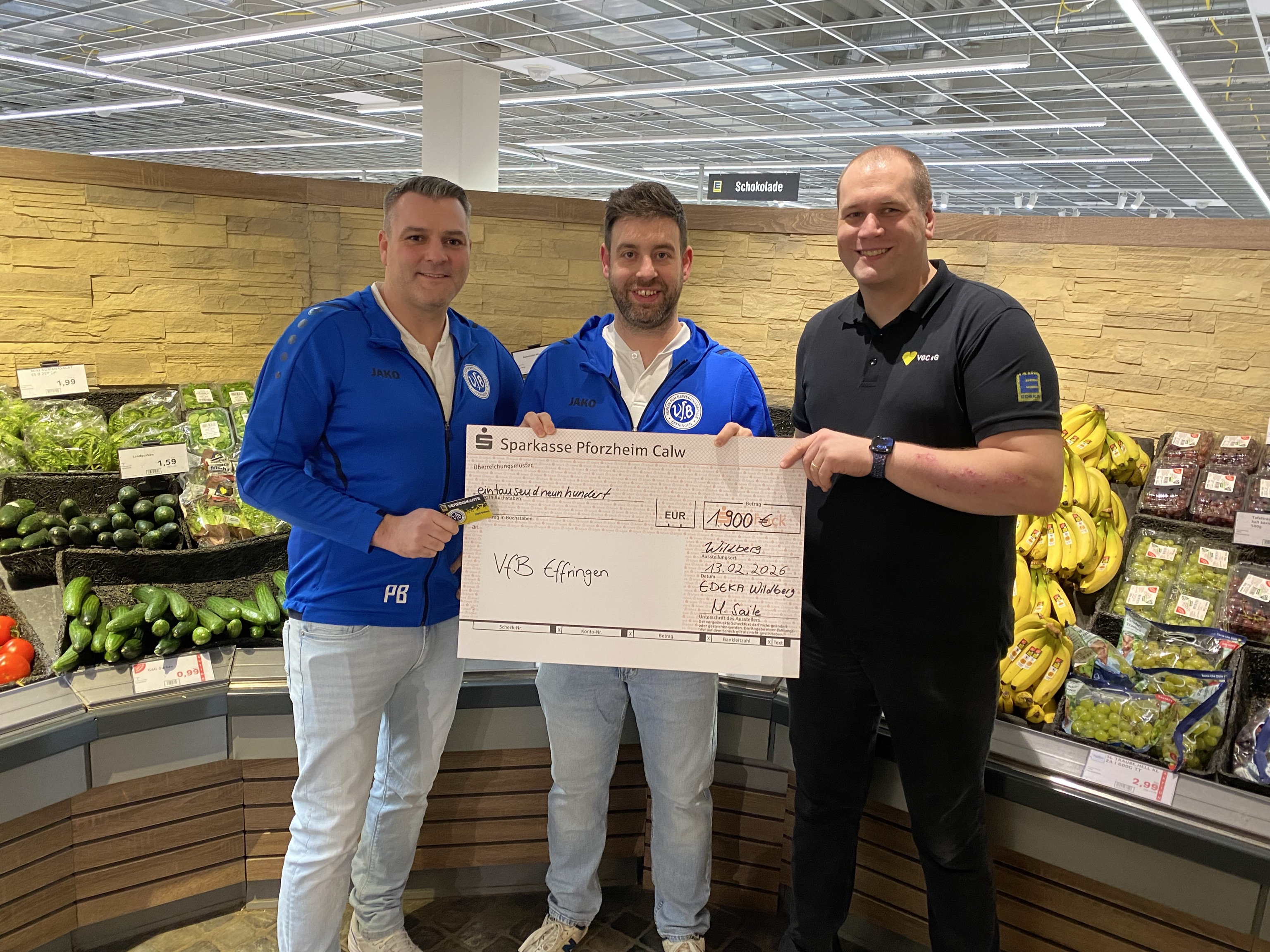 Strahlende Gesichter beim VfB Effringen: Im EDEKA Wildberg wurde dem Verein eine Spende über 1.900 Euro offiziell überreicht.